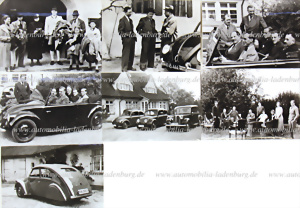 Konvolut 7 original s/w Aufnahmen, teilweise rückseitig mit Schreibmaschine beschrieben, darunter Foto Familie Porsche / Piech vor dem Gasthaus Post in Untertauern Louise Piech, Ferdinand Porsche, Aloisia Johanna Porsche, Dr. Anton Piech, Ernst Piech...Foto Ferry und Ferdinand Porsche mit Dr. Anton Piech, ...Zündapp Typ 12 vor der Porsche Villa etc...13x18cm