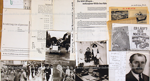 Archiv Ordner "Käfer Fotos II", insgesamt 66tlg.mit original Werksfotos Karmann 1946-1951, VW Werksfotos 1950/1951, einige 60er Jahre, Konstruktionszeichnungen (ältere Kopien von 1934)...Abschrift Dr. Ing. h.c.F. Porsche GmbH Patentabteilung Exposé betreffend den Bau eines deutschen... mehr