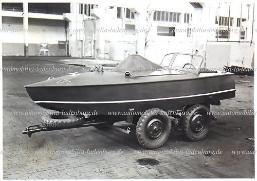 ca. 1945, original s/w Aufnahme, Volkswagen Bootsanhänger, 18x24cm