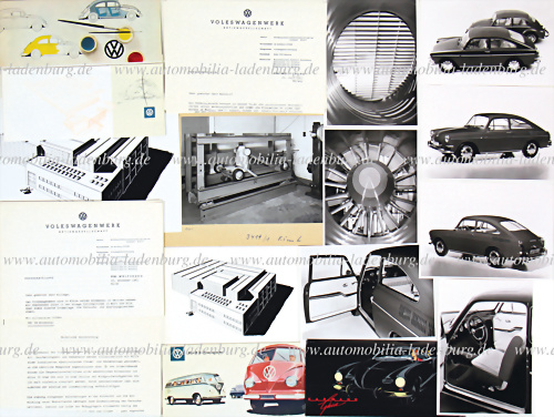 Konvolut 18tlg., darunter Verkaufsprospekte Karmann Ghia, VW Transporter...Werksfotos etc., guter Zustand