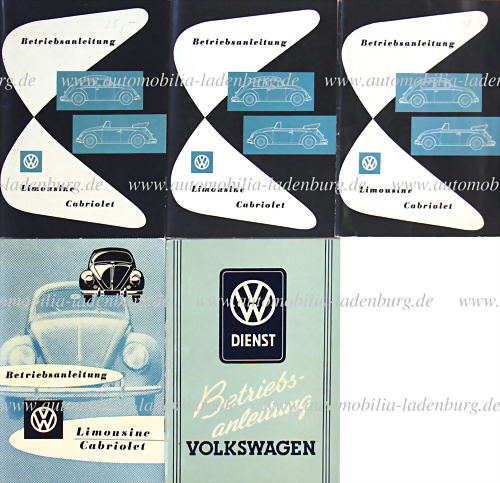 Konvolut 5 Volkswagen Betriebsanleitungen, darunter Ausgabe September 1951, September 1952, April 1958, Januar 1959 und August 1959, guter Zustand