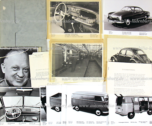 1957, Pressemappe VW, Transporter und Käfer, mehr als 30tlg, mit s/w Werksfotos in original Mappe, selten