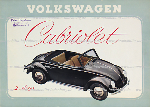 1949, Faltprospekt Volkswagen Typ 14 Hebmüller Cabriolet, 4 Seiten deutscher Text, Ausgabe Oktober 1949, guter Zustand