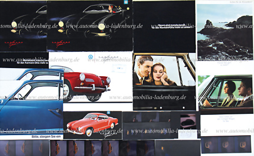 Konvolut 11 Verkaufsprospekte Volkswagen Karmann Ghia, 50er-70er Jahre, eine Ausgabe gelocht, sonst guter Zustand, alle deutscher Text