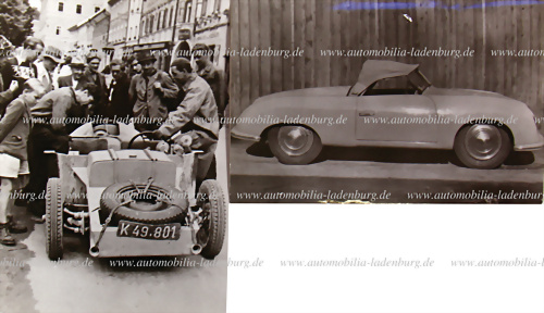 Konvolut zwei original s/w Aufnahmen, darunter Porsche 356 Nr.1 (Foto für Einzelgenehmigung), dazu Porsche 356/02, 18x13cm