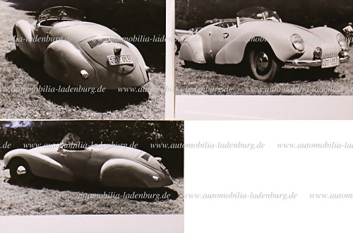 Konvolut 3 original s/w Aufnahmen (Wörner), ca. 1947/1948, Volkswagen Käfer Cabriolet Eigenbau, 13x18cm