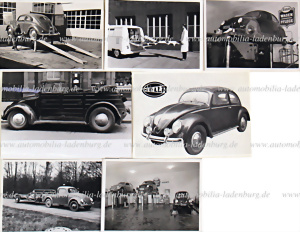 Konvolut 7 original s/w Aufnahmen, wunderschöne Fotos VW Werkstatt ca. 1949/1950, VW mit Sonderaufbau, Werbeposkarte Hella..etc., verschiedene Formate