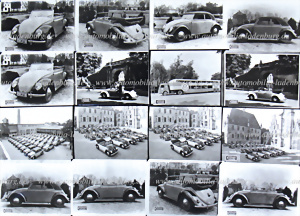 Konvolut 16 original s/w Aufnahme / Werksfotos, VW Käfer Cabriolet Karosserie Karmann 1949, 13x mit Eindruck "Karosserie Karmann", 15x Rückseite gestempelt "Wilhelm Karmann"