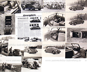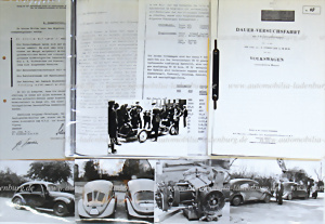 Archiv Ordner "Dauer-Versuchsfahrten Käfer 1937", 96 Seiten ältere Kopien der Dauer-Versuchsfahrt 1937, dazu 4 original s/w Aufnahmen, sowie 1 Abzug 70er Jahre, verschiedene Formate