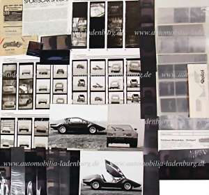 Archiv Ordner "Italien Miura", innen mit Kopien Zeitungsberichten "Mit VW-Motor im Heck: brasilianischer Miura", dazu 1 original s/w Aufnahme, 3x s/w Abzug, sowie Farbdiapositiv