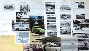 Konvolut 3 Archiv Ordner Käfer in Südamerika "Uruguay / Peru / Venezuela", darunter darunter 2 s/w Aufnahme VW Käfer Venezuela; 18 s/w Aufnahmen VW Käfer Peru 70er Jahre Werk und Produktion, dazu 2 Verkaufsprospekte Escarabbajo 1300 / 1600; 2 s/w Aufnahmen VW Käfer in Uruguay, sowie Archiv Ordner Käfer Costa Rica, innen mit 1 s/w Aufnahme