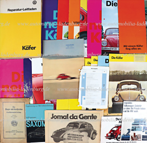 Konvolut darunter Betriebsanleitungen VW Limousine und Käfer Ausgabe August 1957; Betriebsanleitung und Wartungskarte 1967; Betriebsanleitung DKW F102, Ausgabe Juni 1967; Verkaufskatalog 1964; 4 Verkaufsprospekte 2x VW Brasilien u.a. VW 1600 -TL 2 Puertas; EL VW 1600; 2x Mexiko El Volkswagen, dazu Betriebsanleitung VW 181, Ausgabe Januar 1978, inkl. 2 s/w Pressefoto, sowie Kopie "Forschung und Entwicklung VW Typ 1 Modelle 18 u. 18.63"