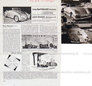 Konvolut zwei original s/w Aufnahmen, VW mit Spezialkarosserie Auto - Technik - Überlingen, ca. 1951, dazu Kopie einer Zeitungsanzeige, 7x10cm