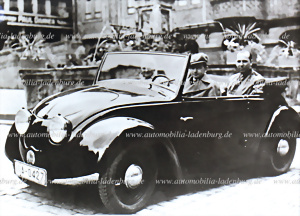 original s/w Aufnahme, Ferry Porsche am Steuer des KDF Wagen Prototyps V2, Marktplatz Tübingen 1935, 13x18cm