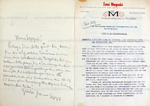 Tiroler Alpenfahrt 1955, 3 Seiten Schriftverkehr, darunter Beschwerdeschreiben von Toni Magnus an ONS/OSK wegen der Nachabnahme von Sepp Greger, dazu zwei Schreiben von der ONS an Greger mit handschriftlicher Notiz...
