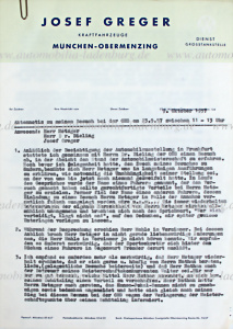 9. Oktober 1957, Aktennotiz von Sepp Greger betreffend Besuch bei der ONS anläßlich der Automobilausstellung in Frankfurt...9 Seiten, inkl. handschriftlicher Entwurf