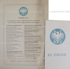 1959, Weihnachtskarte des Gau Südbayern, dazu ADAC "Ehrung der erfolgreichsten südbayerischen Motorsportler 1959"