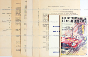 1959, "XXII Internationales ADAC Eifelrennen", Konvolut 8tlg., darunter Programmheft, Ausschreibung, sowie Pressemitteilungen