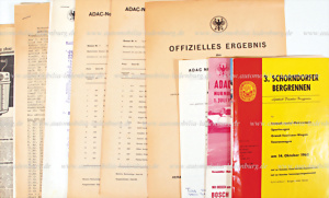 1962, Konvolut, darunter Programmheft "3. Schorndorfer Bergrennen", dazu Rennberichte, Programmheft "ADAC Noris - Ring Rennen", inkl. Nennungsbestätigung, Ergebnislisten...4 Seiten "Ehrentafel der erfolgreichsten südbayerischen Motorsportler", Sporterfolge des AC Dachau