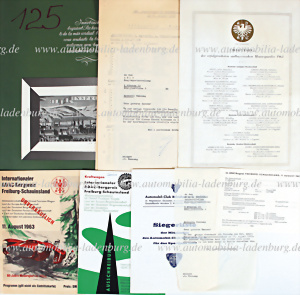 1963, Konvolut, darunter "Preis von Tirol - Innsbruck", Ausschreibung, Trainingsbestimmungen, Fahrerinformation und Ergebnisliste in Fahrermappe, Programmheft "Internationaler ADAC Bergpreis Freiburg - Schauinsland", dazu Ausschreibung, Ergebnisliste und Presseinformation, "Siegerliste Automobil Club München" dazu Ehrentafel 4 Seiten