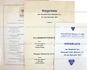 Siegerliste des Porsche Club München e.V. für das Sportjahr 1967, 4 Seiten, dazu Siegerliste und Ehrentafel des Automobil Club München 1967