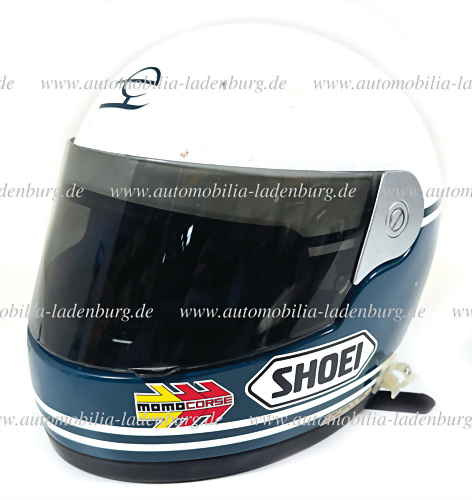 original Fahrerhelm Bob Wollek Saison 1985/1986, "Shoei" (Momo Corse), Bob Wollek gewann 1985 unter anderem die 12 Stunden von Sebring auf Porsche 962, race used