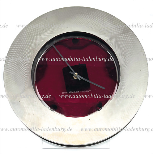 Rennsport Bremsscheibe, innen mit Uhr Plexiglas und Gravur "Bob Wollek Trophy"