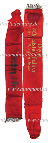Siegerschleife "Dem schnellsten Fahrer in der Wagenklasse Freiburg i. Br.", 16.07.1933, Manfred von Brauchitsch siegte auf Mercedes Benz Typ SSKL, Hoheitszeichen verdeckt (Bestätigung über die Übergabe durch Manfred von Brauchitsch an den jetzigen Besitzer liegt vor)