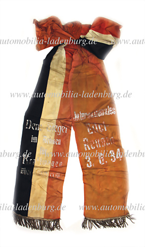 Siegerschleife "Dem Sieger Internationales ADAC Avusrennen für Kraftwagen 22. Mai 1932". Mit dem von Reinhard von Koenig-Fachsenfeld aerodynamisch gestalteten Mercedes Benz SSKL, einem für die damalige Zeit ungewöhnlichen und in einer damaligen Rundfunkreportage als „silberner Pfeil“ bezeichneten... mehr