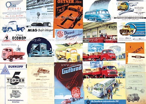 Konvolut 23tlg., Nutzfahrzeuge überwiegend 50er Jahre, darunter Ostner, Econom, Dürkopp, Gutbrod, MIAG, Krauss-Maffei, (deutsch., franz., niederl.), guter Zustand