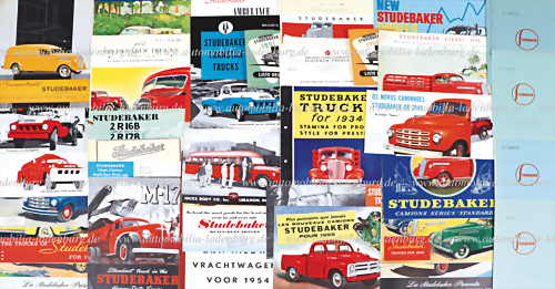 30er-50er Jahre, Konvolut 36 Verkaufsprospekte und Kataloge, Nutzfahrzeuge, engl., franz., niederl. Text, teilweise gelocht, guter Zustand