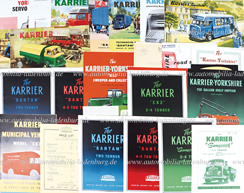1950-1960er Jahre, Konvolut 44 Verkaufsprospekte und Kataloge Nutzfahrzeuge sowie orig. Preislisten zu Karrier v. Rootes Brüssel 1950-1953, deutsch., franz., niederl. Text, guter Zustand
