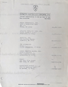1977, Internes Händlerverzeichnis „Chinetti – Garthwaite Imports INC.“, 3 Seiten, sehr selten (Archiv Chinetti)