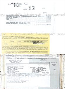 1972, Ferrari 275GTB/4 (#09975) vollständige Verkaufs- Exportdokumentation, darunter original „Transfer of Ownership“ von J.Hoke & Co an Fantasy Junction, original Frachtbrief „Züst-Ambrosetti S.p.A.“ bestätigt die Übergabe an den Dampfer „Miho Maru“ Empfänger Dr. Stanton L. Witter, 6.04.1972 original Schiffsfrachtbrief „Bill of Landing – Höegh Ugland Auto Liners“ mit Beschreibung, 13.03.1972 original Versicherungspolice „Agricoltura Assicurazioni S.p.A“ Versicherungswert 8600USD, 15.03.1972 offizielle Zollrechnung „Bureau of Customs – Special Customs Invoice“ für den Import (6200USD), 7.03.1972 original Beglaubigung durch den Vize Konsul der Vereinigten Staaten in Mailand mit Konsulatssiegel bestätigt die Echtheit der Exportunterlagen für die Einfuhr in die USA, 24.04.1972 original Port of Houston „Carriers Certificate mit Fahrzeugname und Empfänger und Chassisnummer, dazu technisches Datenblatt „Agip Sint 2000“, seltener Provenienz Beleg für eines der bedeutendsten Ferrari Modelle der 60er Jahre