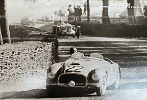 1949, original Werkspostkarte Luigi Chinetti auf Ferrari 166MM (#0008M) Le Mans 1949, rechts oben mit Eindruck „Modena Ferrari Italia“, 10.5x15cm, wunderschöner Zustand, Rarität (Archiv Chinetti)