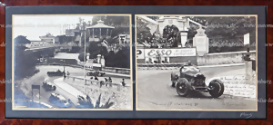 17. April 1932, Geschenk von Tazio Nuvolari an Vittorio Jano, zwei s/w Aufnahmen, davon eine handsigniert mit Widmung an Vittorio Jano anlässlich seines Sieges beim Grand Prix Monaco 1932 "An Commendatore Vittorio Jano, im Anblick der von ihm geschaffenen Maschine erinnere ich an einen strahlenden Sieg, der dankbare Fahrer Tazio Nuvolari", Nuvolari belegte den ersten Platz auf Alfa Romeo Monza vor Rudolf Caracciola ebenfalls auf Alfa Romeo Monza, 70,5x32cm, Museumsqualität