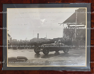 22. April 1934, Geschenk von Achille Varzi an Vittorio Jano, handsignierte und gerahmte s/w Aufnahme mit Widmung an Jano "An Commendatore Vittorio Jano, mit tiefer Bewunderung und aufrichtiger Dankbarkeit Achille Varzi", Achille Varzi auf Alfa Romeo P3, Circuito Piedro Bordino Allessandria, Vierfachsieg der Scuderia Ferrari, Varzi vor Chiron, Tadini und Comotti...30,5x49,5cm