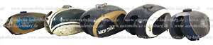 Konvolut 5 Benzintanks für Mondial, unrestaurierter Originalzustand
