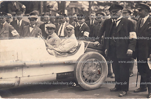 Original s/w Aufnahme / Fotopostkarte Alfred Neubauer auf Mercedes, links daneben Graf Giulio Masetti, Targa Florio 1924, 9x14cm