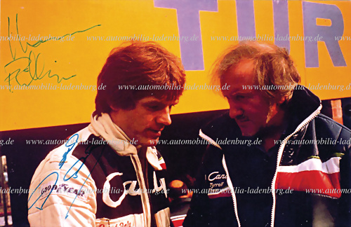 Handsignierte Farbaufnahme von Konstrukteur Maurice Philippe (Lotus) und Ken Tyrrell, 9x13