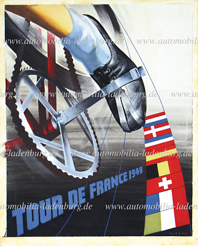 Original Plakatentwurf von Carlo Demand (1921-2000), Gouache auf Karton, geschaffen als offizieller Entwurf für das Tour de France Plakat im Jahre 1949. Das Motiv zeigt einen kraftvoll modellierten Fuß, der energisch in die Pedale eines Rennrades tritt – ein Symbol für Dynamik, Ausdauer und den... mehr