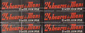 1958, Konvolut 6 Aufkleber "24 heures du Mans 21 et 22 Juin 1958", 7x27cm, guter Zustand