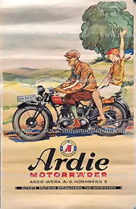 20er Jahre, original Werbeplakat "Ardie Motoräder - Ardie Werk A.G. Nürnberg", 70x45cm, guter Zustand, selten