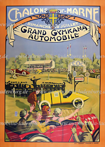 1925, Veranstaltungspalakt "Grand Gymkana Automobile", Entwurf Léopold Duflo, das farbintensive und detailreiche Motiv zeigt eine lebendige Szene des Automobilwettbewerbs mit Rennwagen, Zuschauern und Musik Corps. Die Darstellung fängt auch charmante Weise die Begeisterung der 20er Jahre für das Automobil ein, 158x112,5cm, brilliante Farben, sehr guter Zustand (auf Leinen)