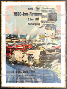 Original Veranstaltungsplakat ADAC 1000KM Rennen auf dem Nürburgring 1966, gerahmt 93x70cm