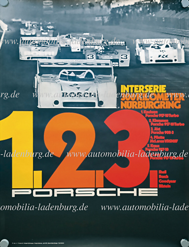 1973, original Rennplakat „Interserie 300Km Nürburgring 1 2 3“, Entwurf Atelier Strenger April 1973, 101x76cm, guter Zustand