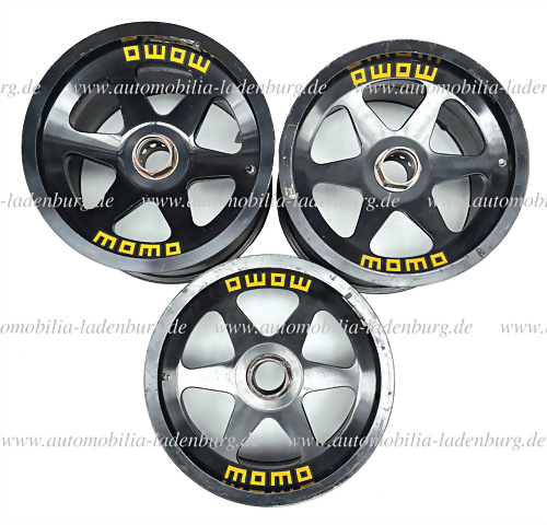 Konvolut 3 MOMO Rennsportfelgen für Porsche 962C, dazu 3 Zentralverschlüsse
