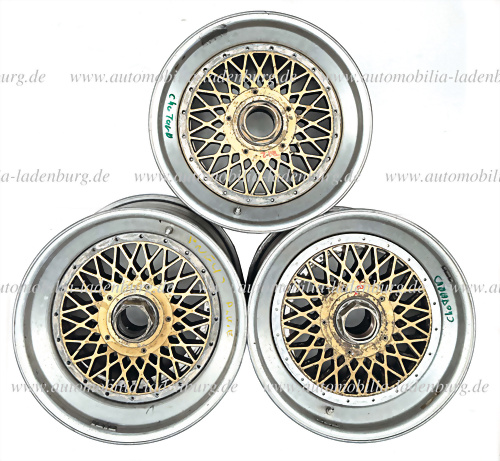 Konvolut 3 BBS-Felgen / Rennsportfelgen (3-teilig), für Porsche 956 (956.361.024.00), mit 3 Zentralverschlüssen
