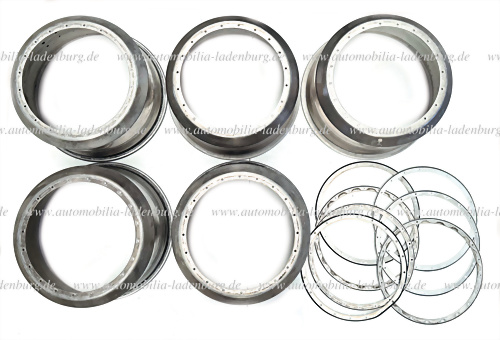 Konvolut 5 BBS-Felgen / Rennsportfelgen Ersatzteile, Porsche 956/962, dazu 7 Zwischenringe