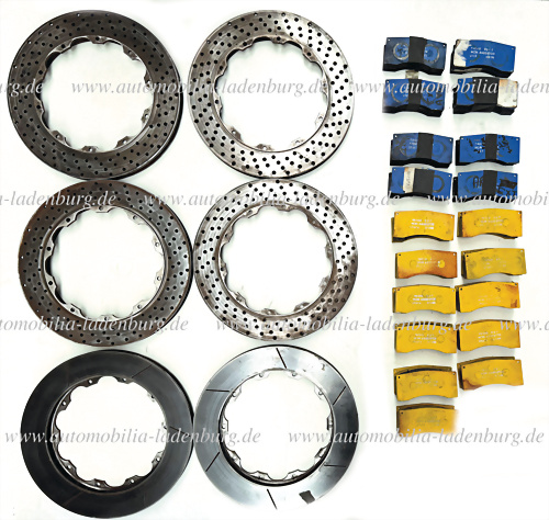 Konvolut, 4 Bremsscheiben Porsche 934/935, Durchmesser 35,5cm, dazu 11 Paar Bremsklötze NOS, 8 Paar gebraucht